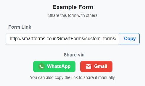 Reach your audience directly through WhatsApp and Gmail with one click. Send form links instantly without needing to copy or switch between apps. Easily share forms with individuals, groups, or mailing lists in just seconds. Boost engagement by connecting through the platforms your users trust the most. Each shared link is optimized for quick access on both mobile and desktop. Perfect for campaigns, surveys, and feedback collection on the go. SmartForm makes sharing effortless—so you can focus on collecting responses, not sending links.